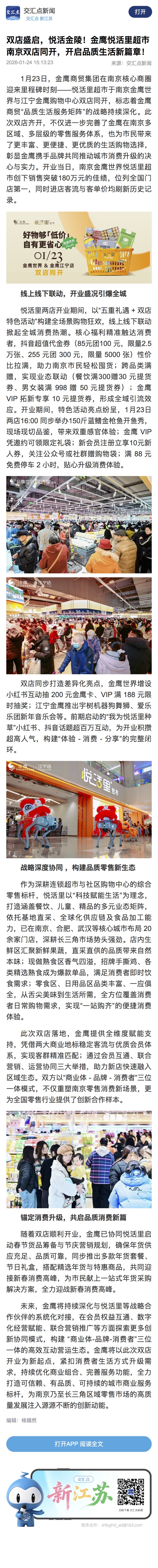 双店盛启,悦活金陵!金鹰悦活里超市南京双店同开,开启品质生活新篇章!