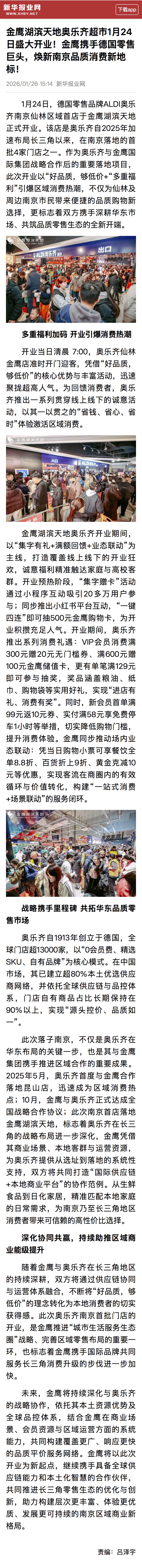 金鹰湖滨天地奥乐齐超市1月24日盛大开业!金鹰携手德国零售巨头,焕新南京品质消费新地标